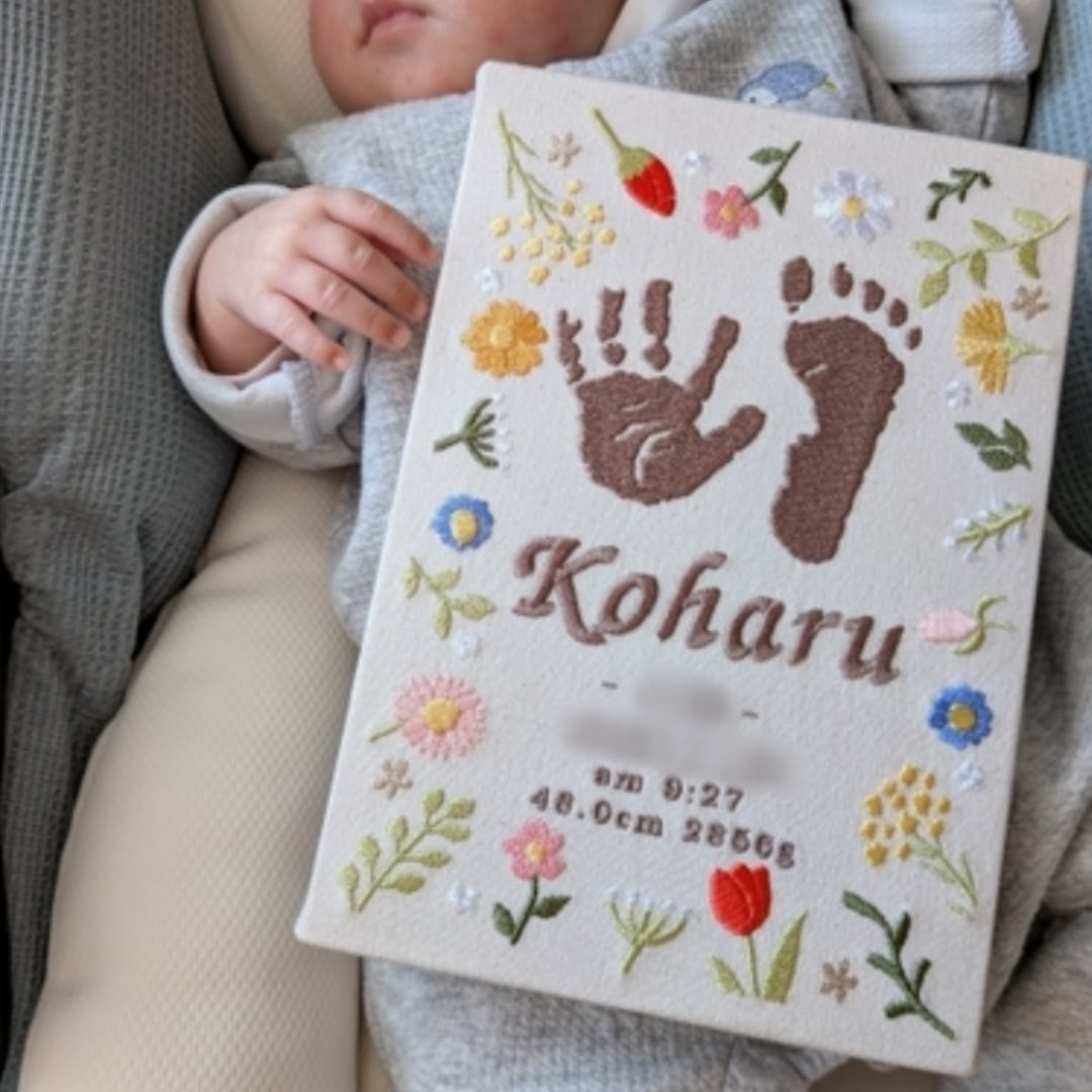 【刺繍 命名書 A5】出産祝いに人気|お花の命名書|名入れ|ベビー・ニューボーンフォト